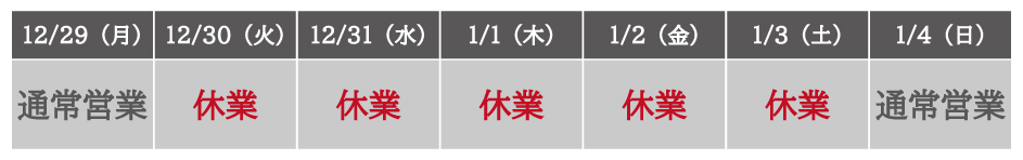 年末年始の電話受付休業と